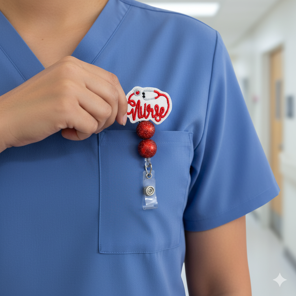 Accessorize your ID badge with a handmade feltie badge reel. These badge reels are perfect for nurses, teachers, dentists, business professionals or anyone who has a card that needs to be regularly swiped.
