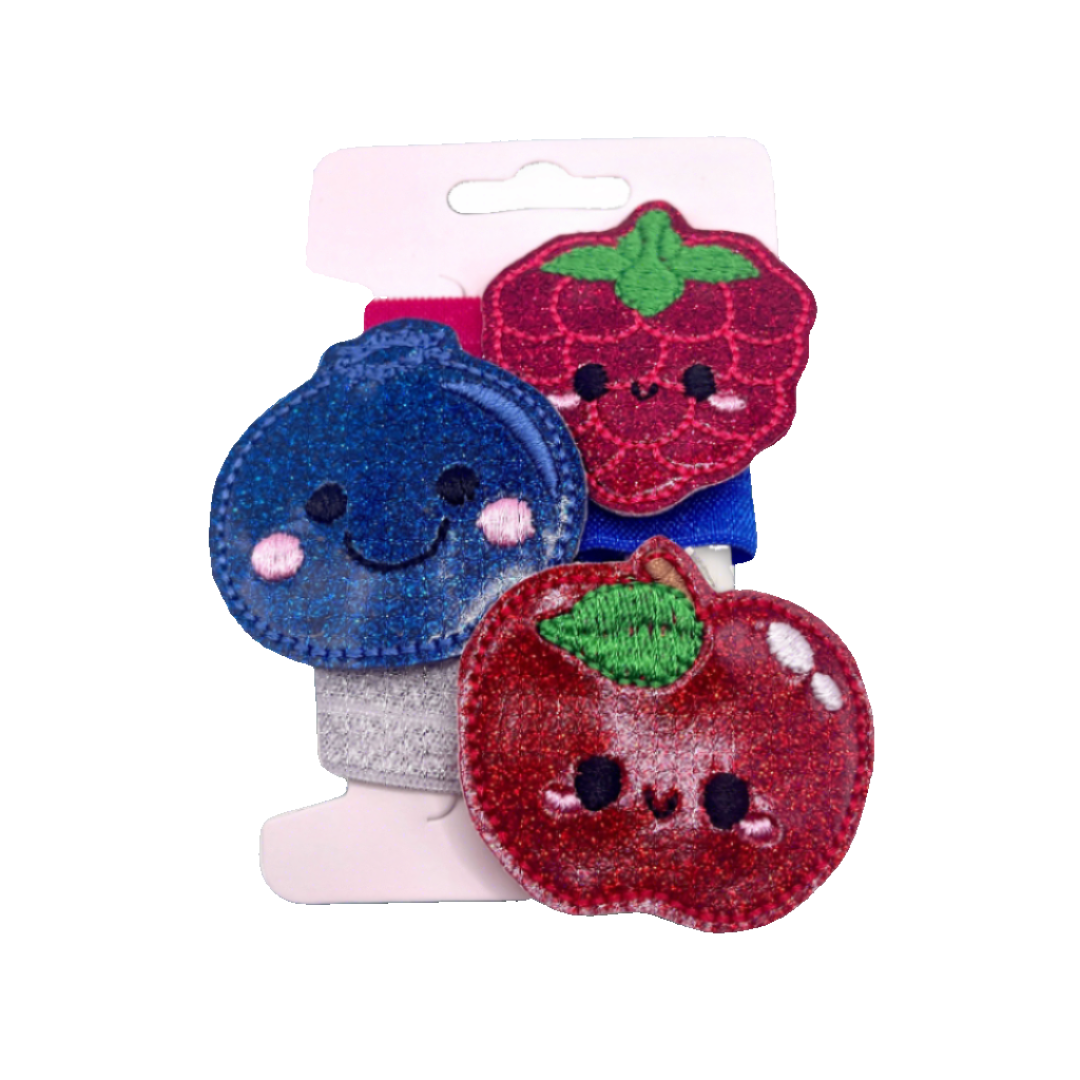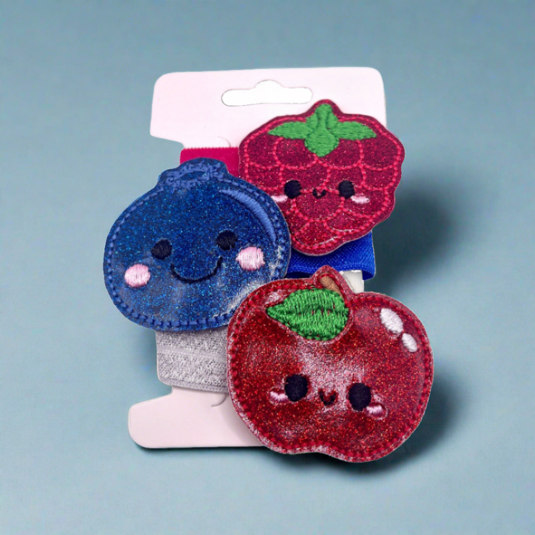 Apple, Raspberry, and Blueberry Pony Tail Hair Ties