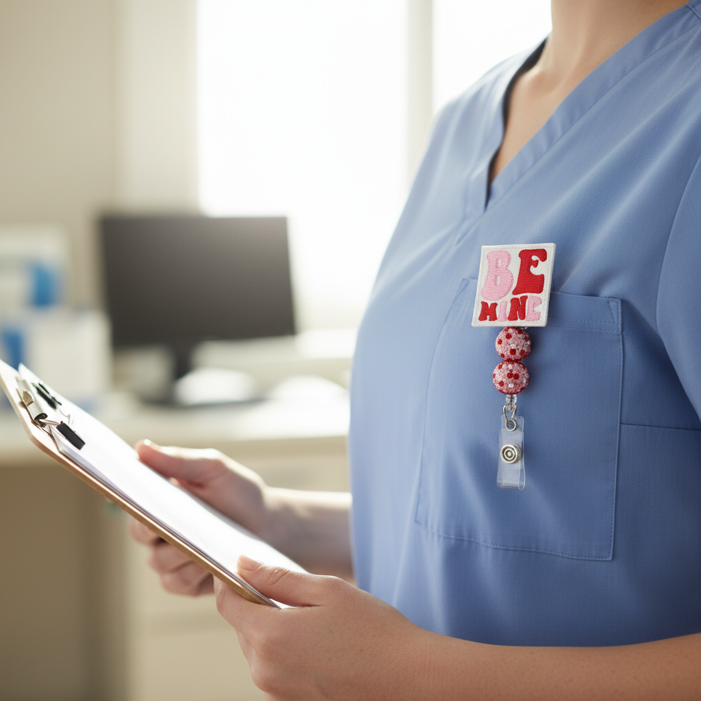 Wear your heart on your name badge with our Be Mine Pink Badge Reel! Perfect for Valentine's Day or any day you want to spread love and cheer. This cute and quirky accessory is sure to brighten up any outfit. No more boring badge reels, show off your playful side!