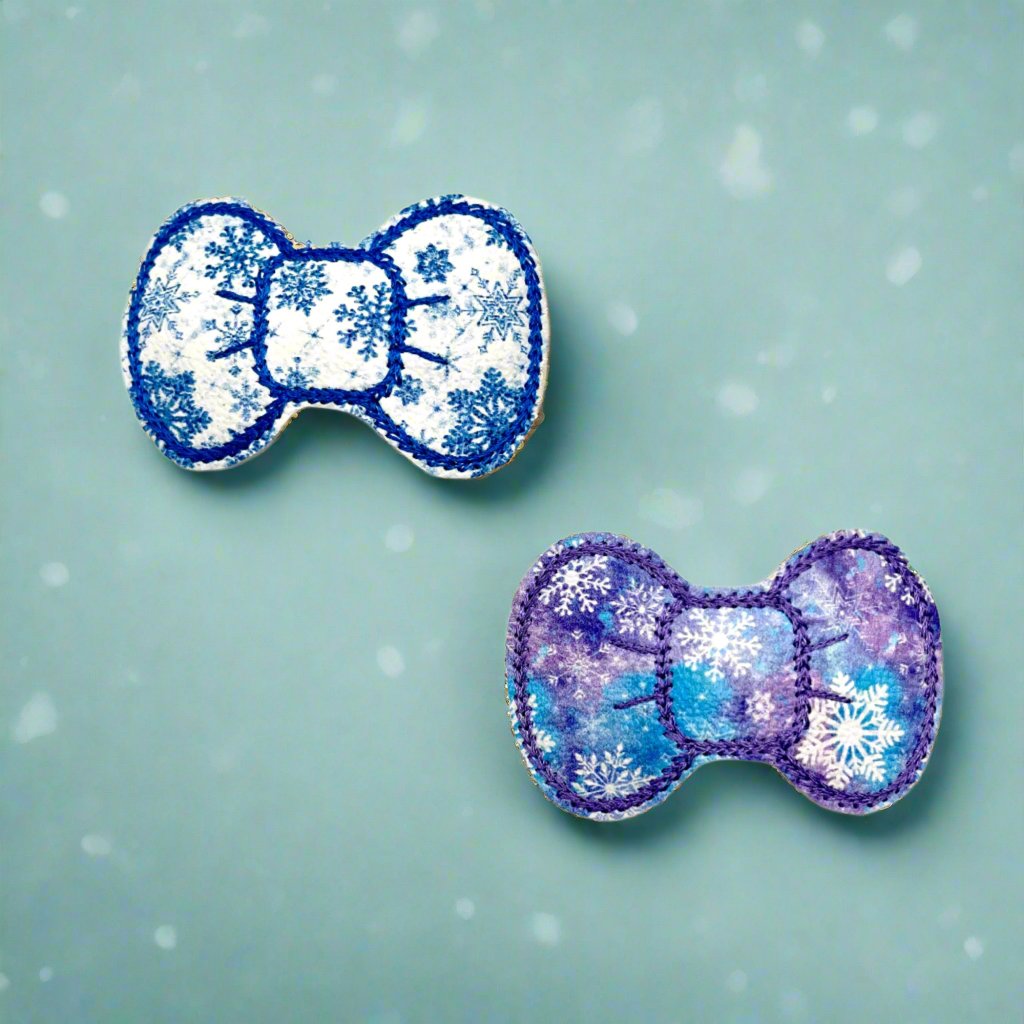 Set up a winter wonderland on your head with these two Blue and Purple Snowflake Bow Clips! Adorable handmade felties topped with a snap clip means you can wear your wintery cheer all day long. Perfect for any 'do, these clips are made for winter-loving kids of all ages!