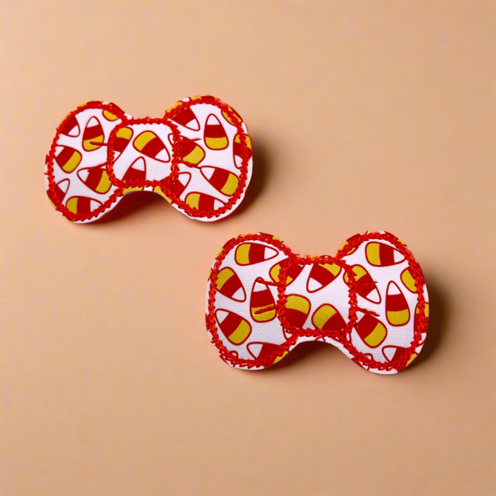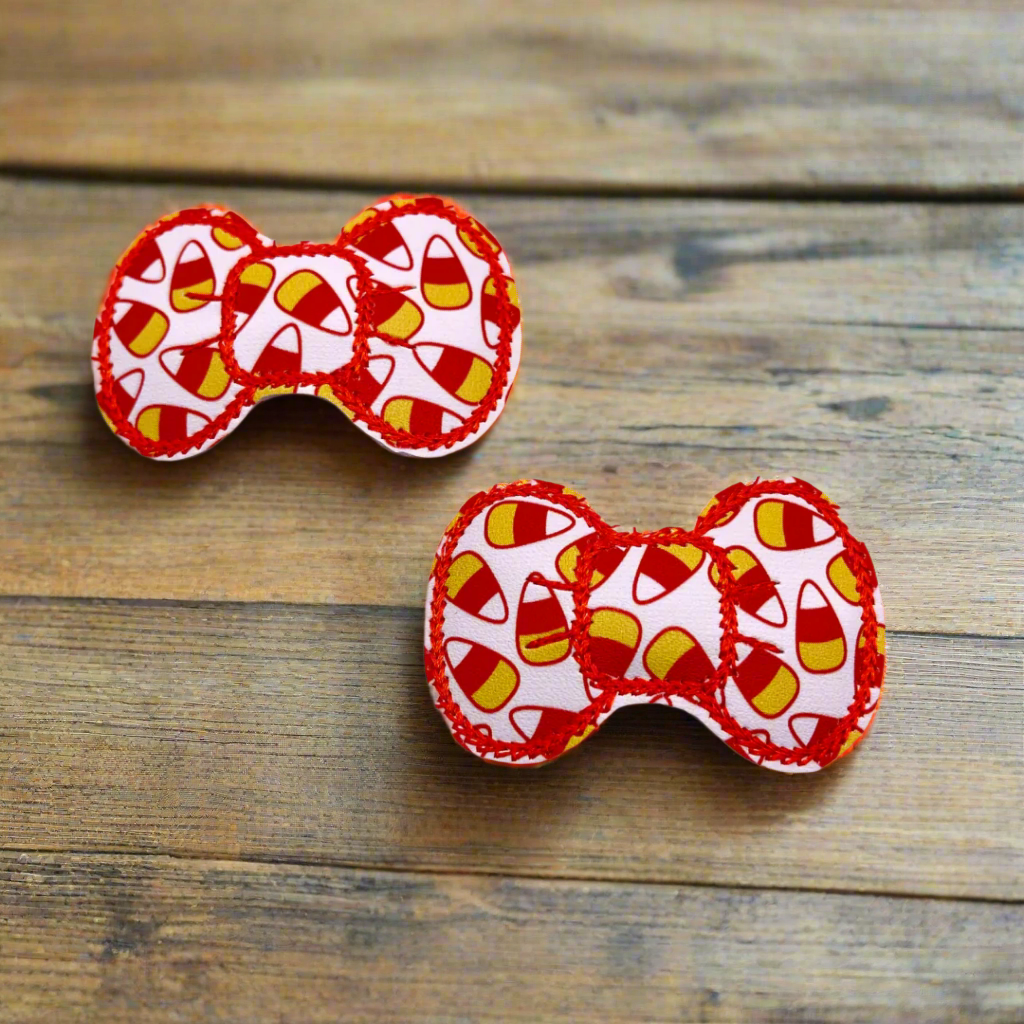 Complete your fall outfit with these adorable candy corn hair bow clips. Featuring a high quality candy corn feltie hair bow . The felties are attached to a snap clip, making them easy to clip onto any hairstyle.