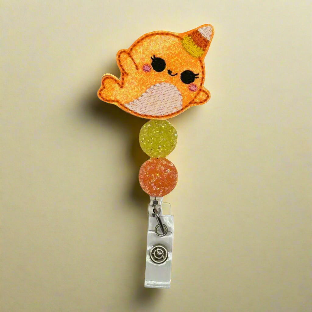 Candy Corn Narwhal Beaded Badge Reel