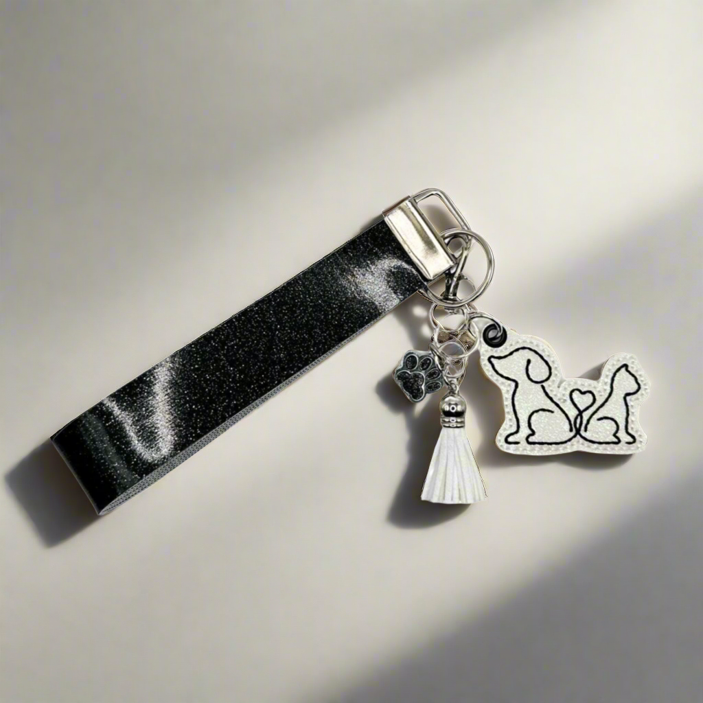 Add a touch of love and charm to your keys and wrists with our adorable Dog and Cat Heart Tail Keychain and Wristlet. Show the world your love for furry friends while keeping your essentials close at hand. Perfect for pet lovers and anyone looking for a fun accessory!