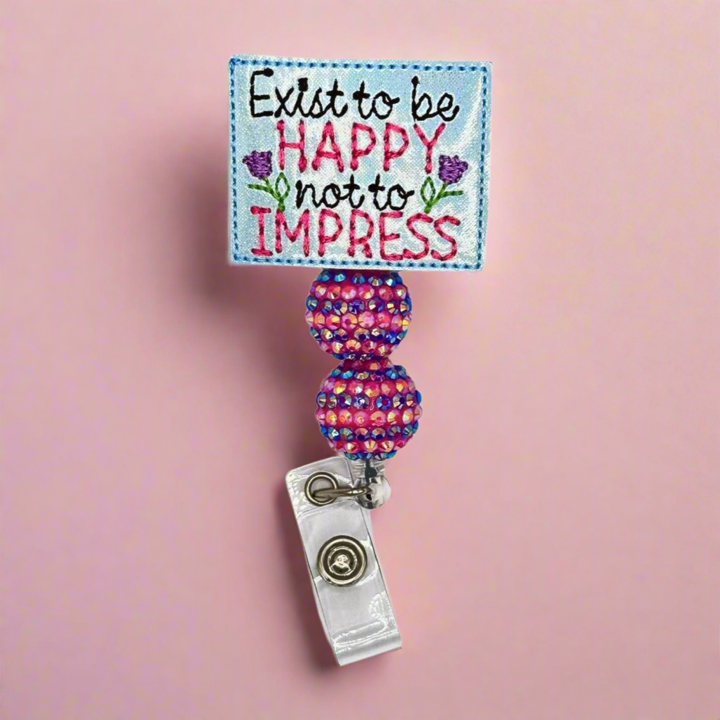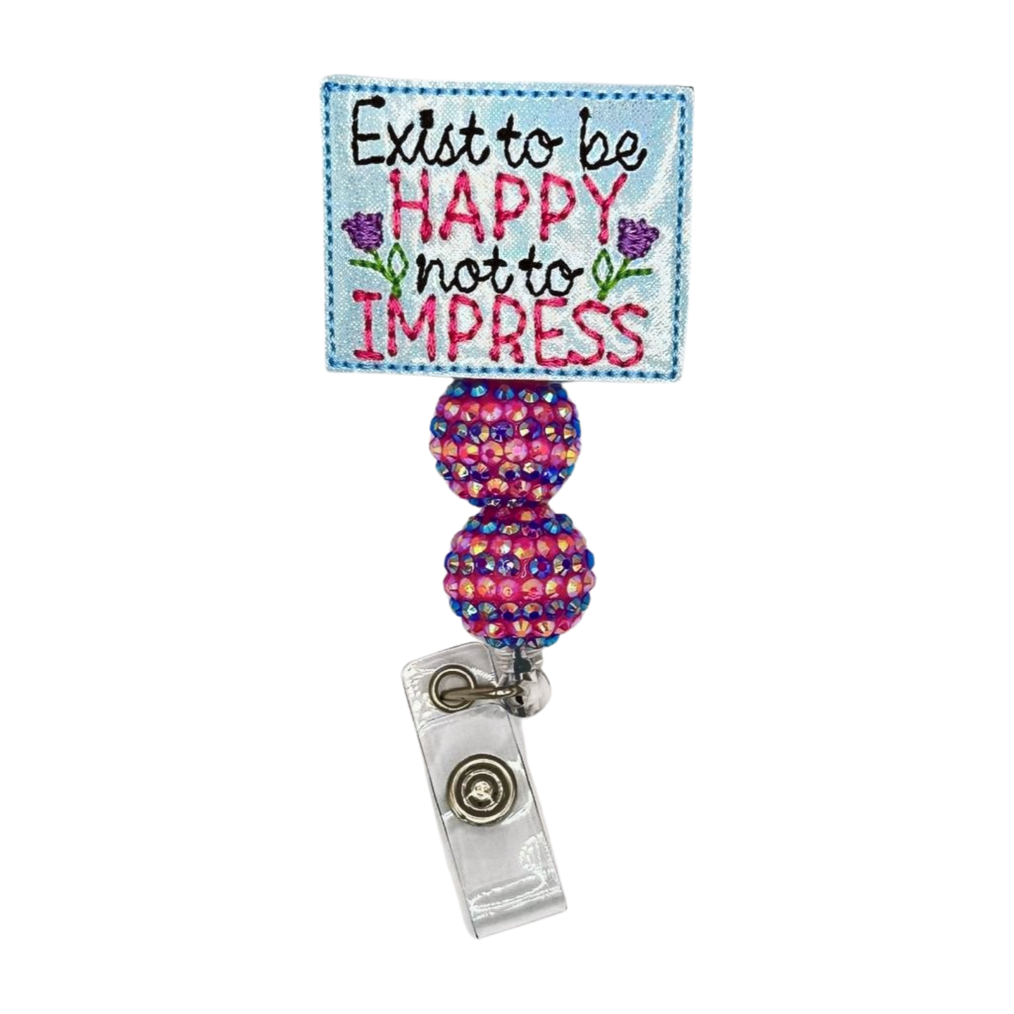 Wear your happiness with pride, not your impressiveness! Embrace your individuality with this quirky Exist to be Happy Not to Impress Badge Reel. Ditch the pressure to impress and let your true self shine. A playful reminder to choose happiness over societal expectations.