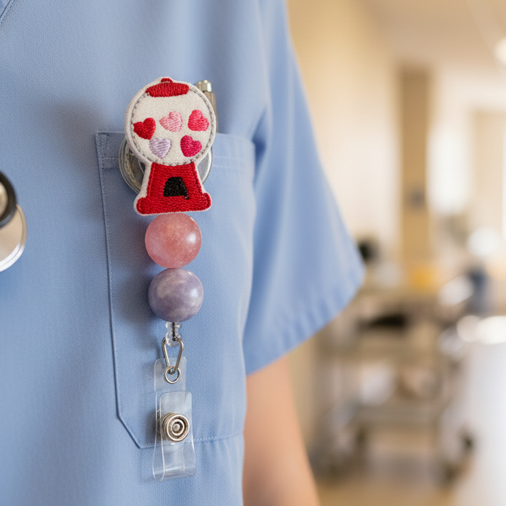 Upgrade your work accessories with our quirky Gumball Beaded Badge Reel! Show off your fun personality with this stylish and practical accessory, perfect for holding your ID or keys. Makes a great Valentine's gift for your favorite coworker.
