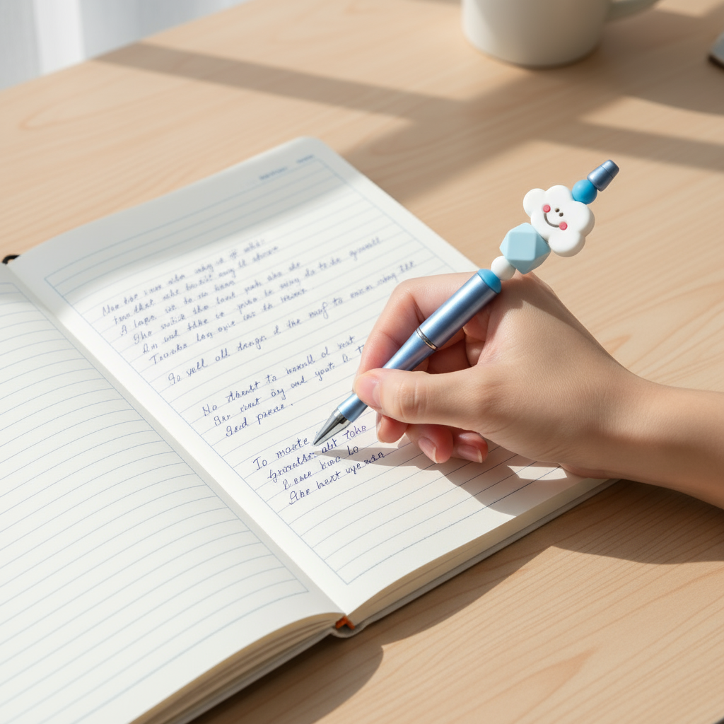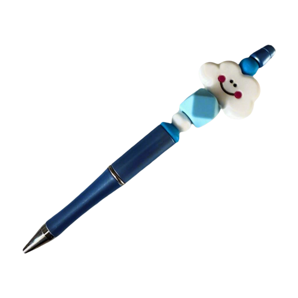 Take your writing to new heights with our Happy Cloud Beaded Pen. Featuring a playful, blue beaded design, this pen will add a touch of whimsy to any task. Let this happy cloud guide your words and brighten your day.