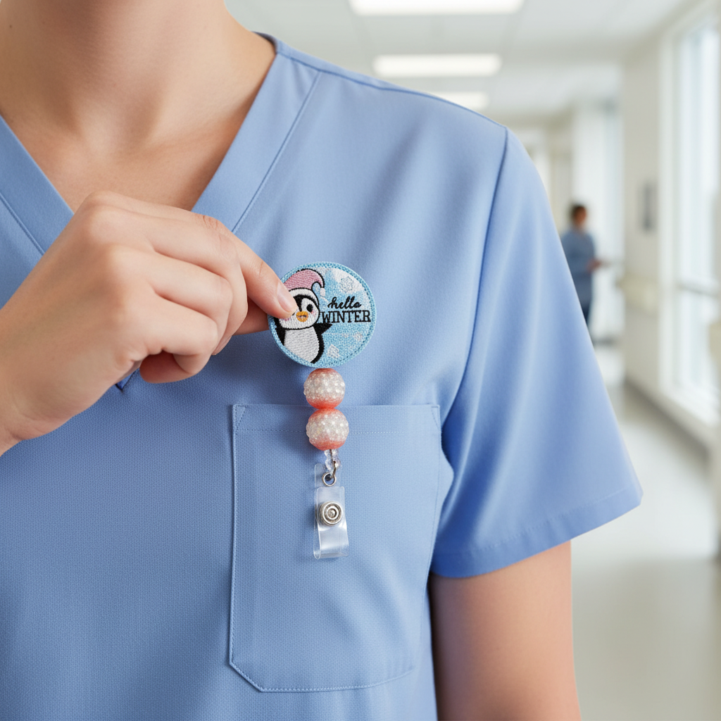 Stay cool this winter with our Hello Winter Penguin Badge Reel! This colorful and playful badge reel is perfect for adding some personality to your work attire. Keep your ID or keys safe and secure with this quirky and fun accessory.