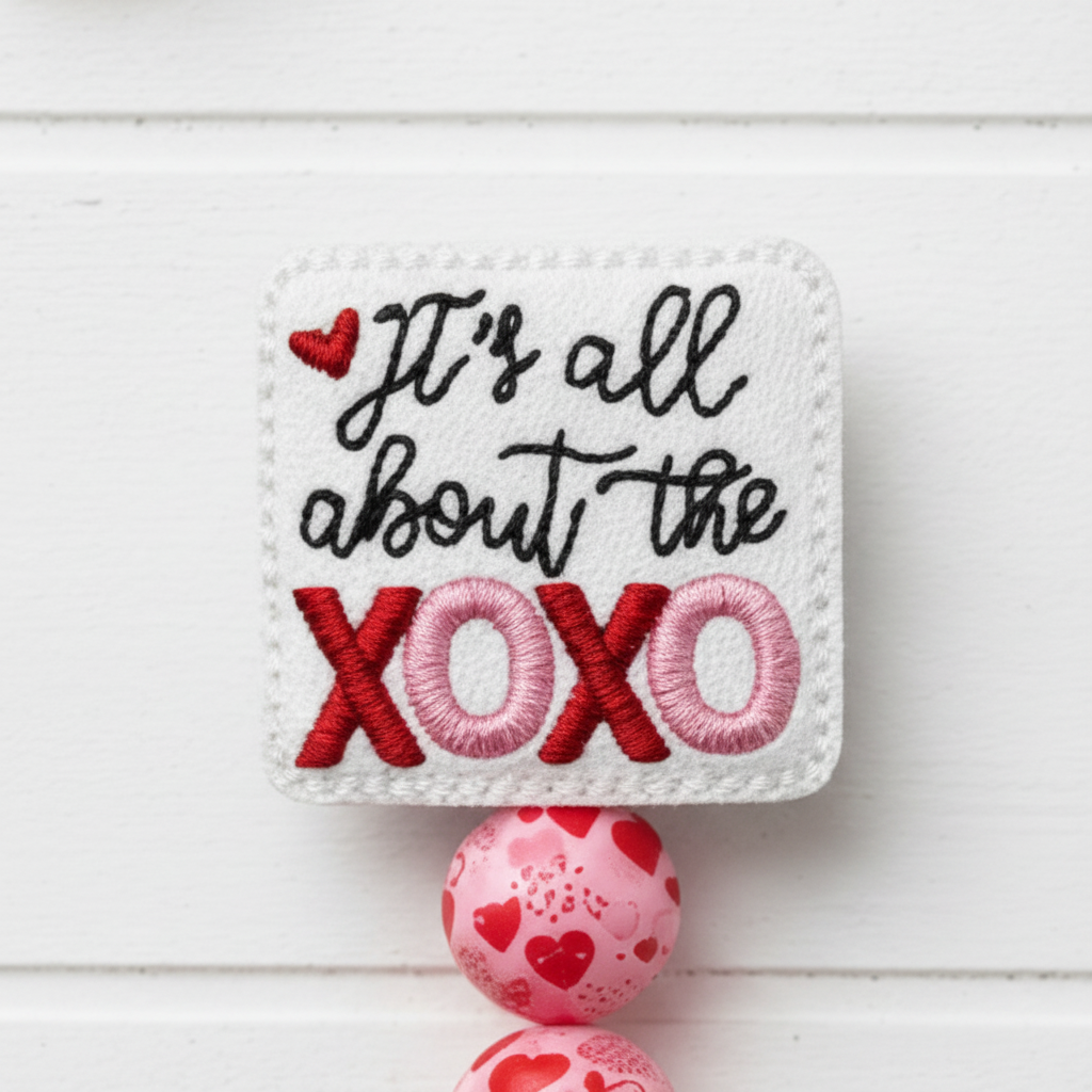 Get your loved one something special with this It’s all about the XOXO Beaded Badge Reel. Featuring a it’s all about the XOXO feltie with pink and red heart beads. The reel has a rotating clip and a retractable cord that allows easy access to your ID card.