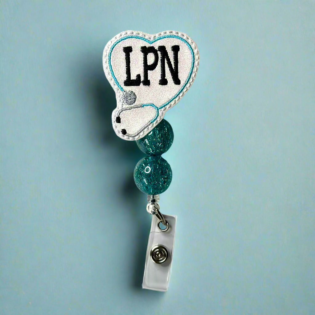Show off your nursing pride with our LPN Beaded Badge Reel! Featuring a licensed practical nurse heart with a stethoscope feltie, this quirky and fun accessory is perfect for displaying your badge while adding a touch of personality. Don't settle for a plain badge reel, let your personality shine with our beaded design.
