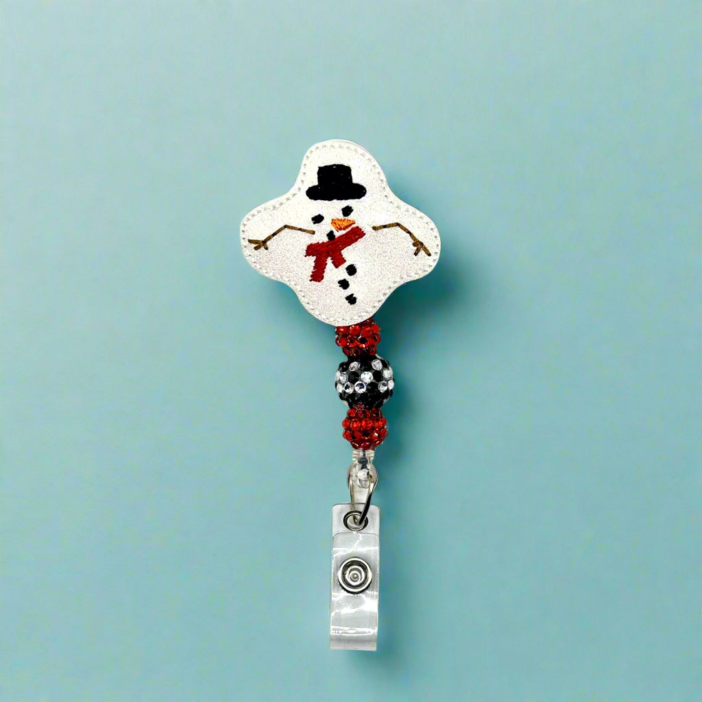 Melted Snowman Beaded Badge Reel