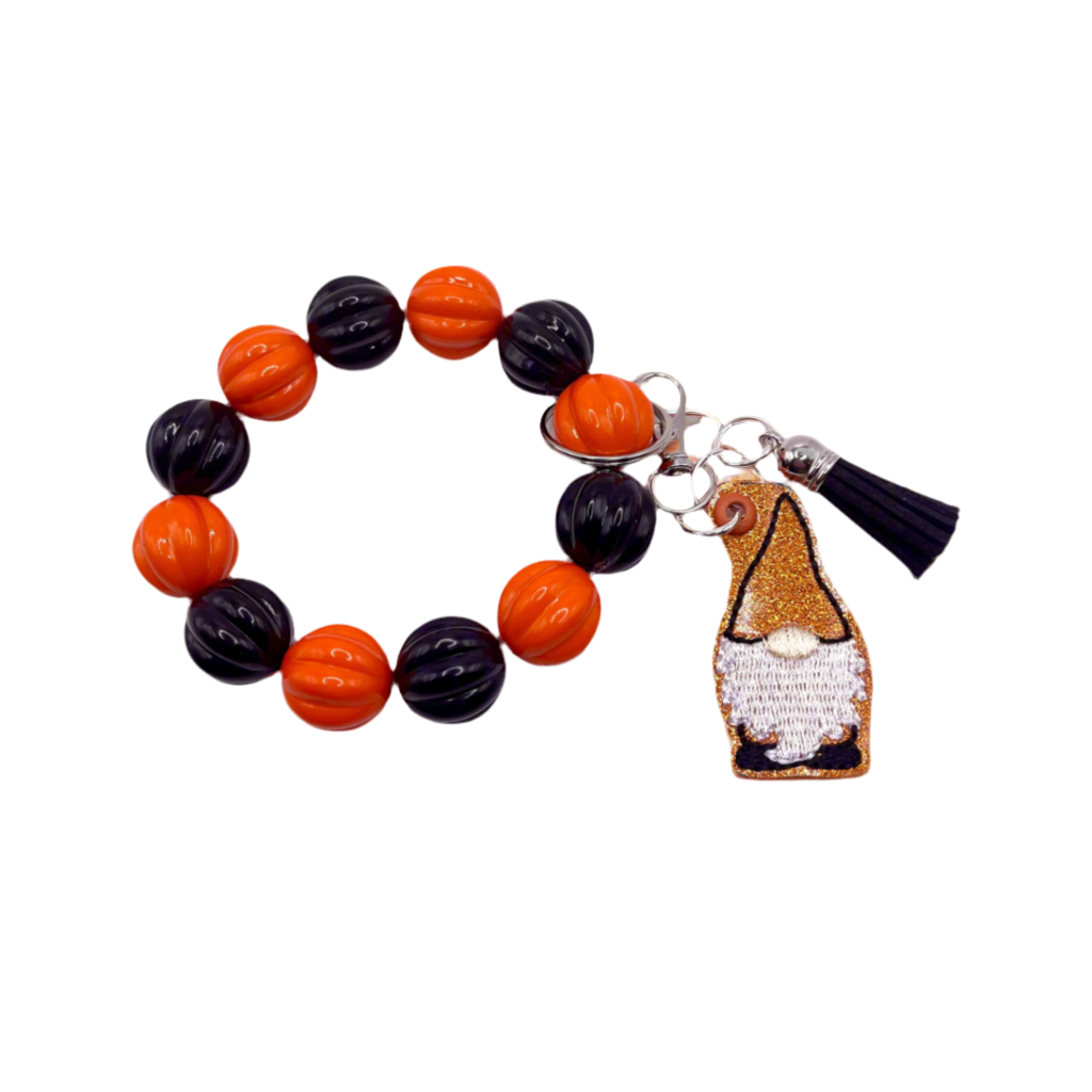 Orange and Black Gnome Keychain with Beaded Wristlet