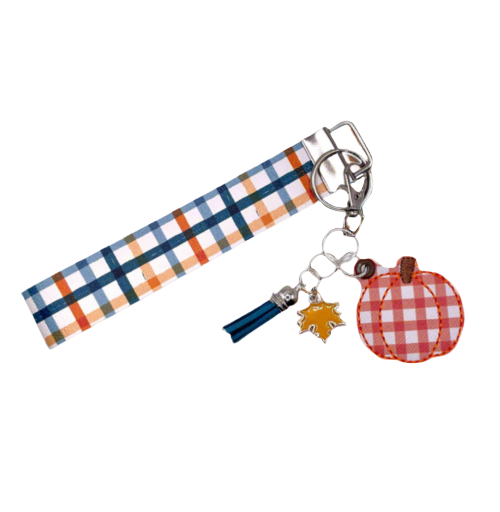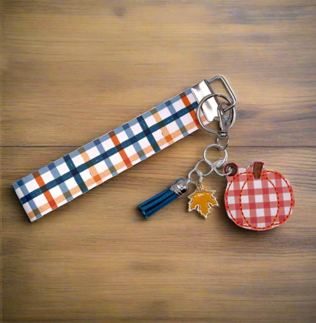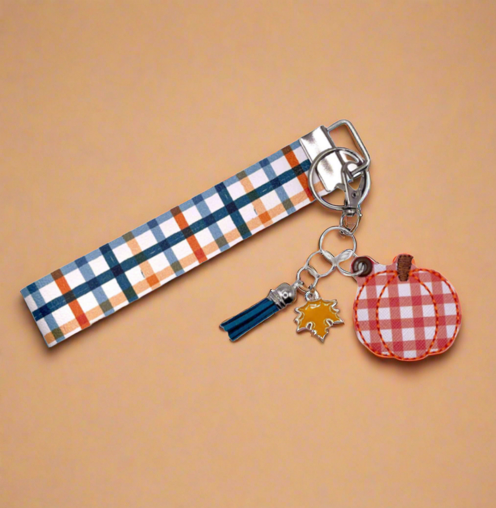 Orange Plaid Pumpkin Keychain and Wristlet