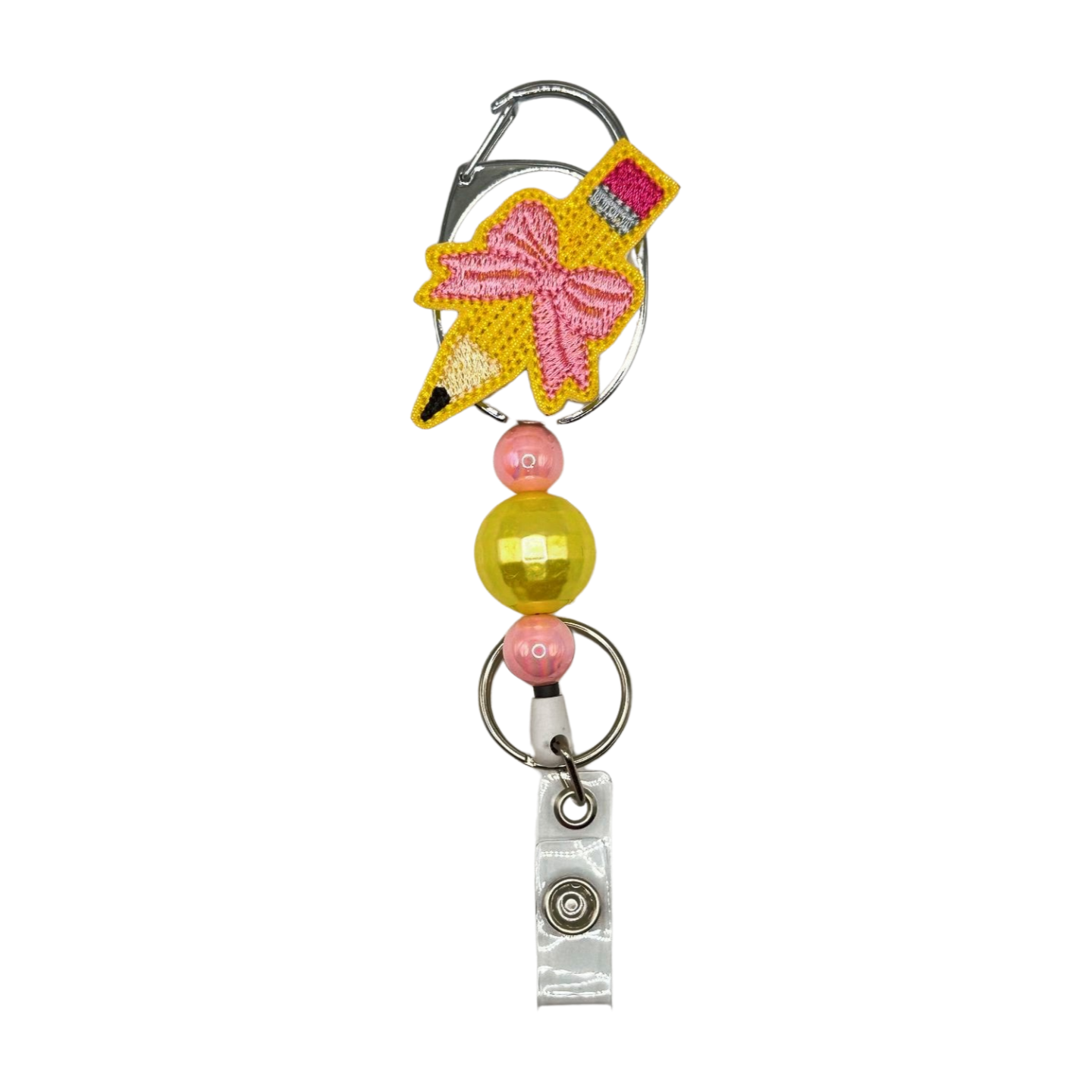 Make a statement with style and whimsy with our Pencil with Bow Badge Reel. This quirky and fun accessory not only keeps your badge secure, but also adds a touch of charm to your work wardrobe. Perfect for anyone who loves to express their playful side.