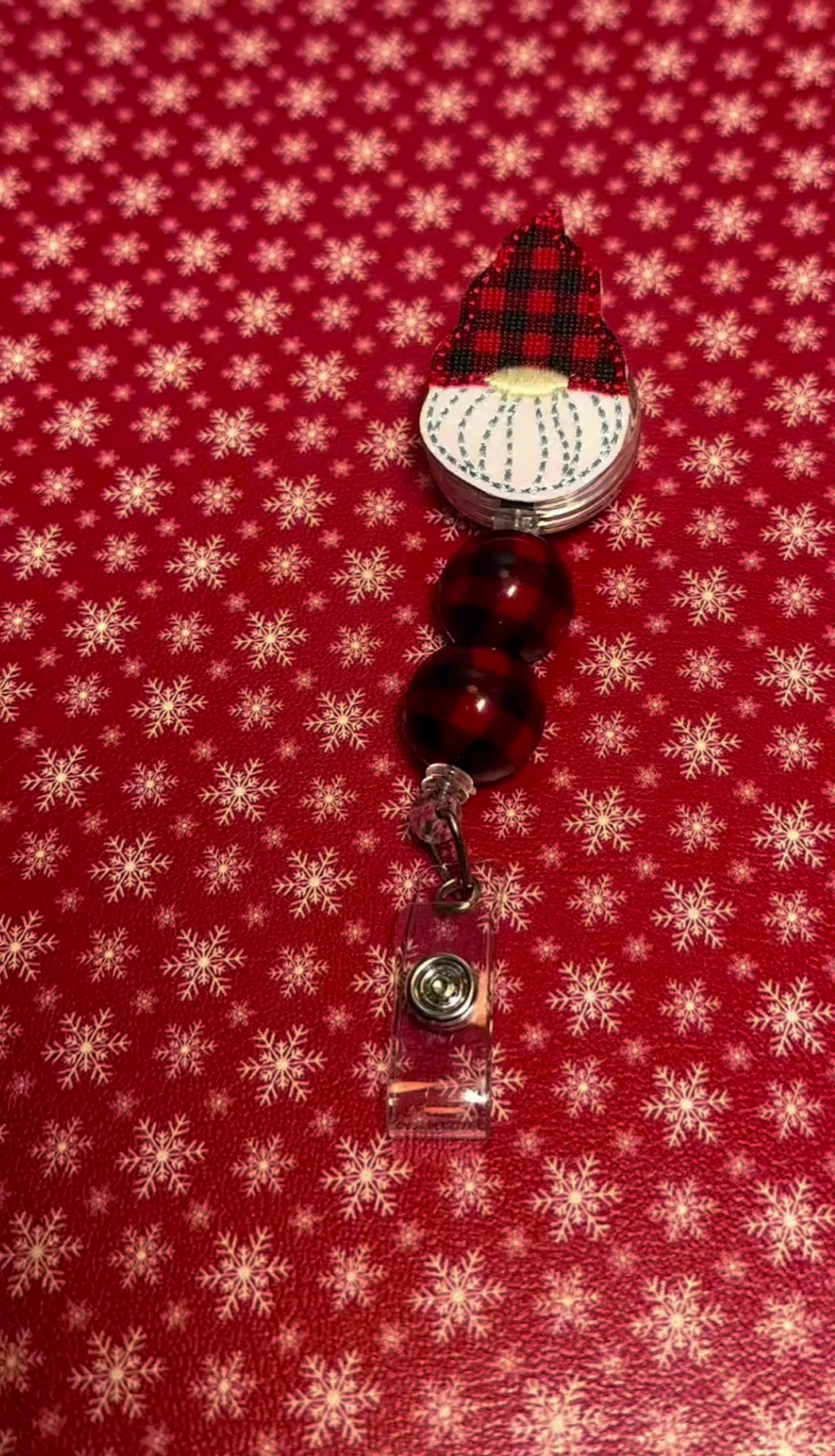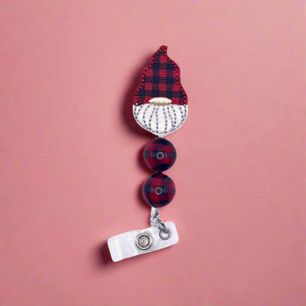 Buffalo Plaid Hat Gnome Beaded Badge Reel