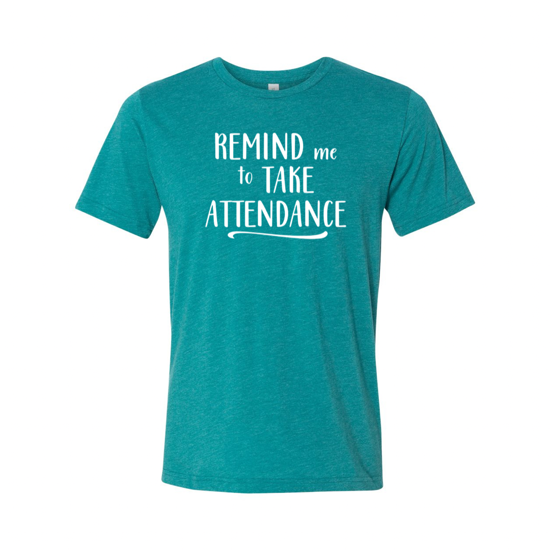 This T-shirt is made out of high quality super soft Tri-Blend material and the Remind me to take attendance print adds an unique and eye-catching touch to the shirt.