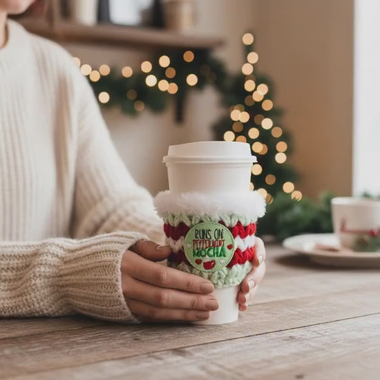 Keep your hands cozy and your drinks festive with our Runs on Peppermint Mocha Coffee Cozy! This holiday drink sleeve is the perfect accessory for all your seasonal beverages, adding some pepperminty flair. Never have a cold cup again.