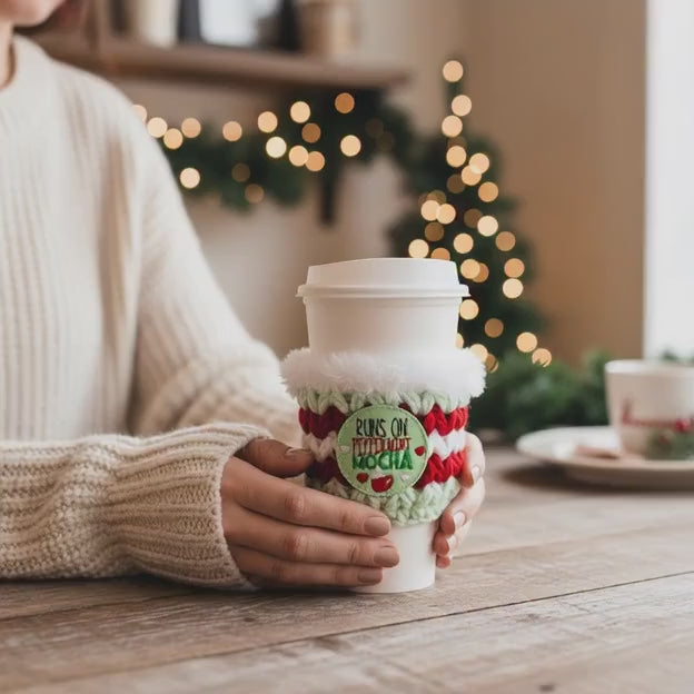 Runs on Peppermint Mocha Coffee Cozy | Holiday Drink Sleeve