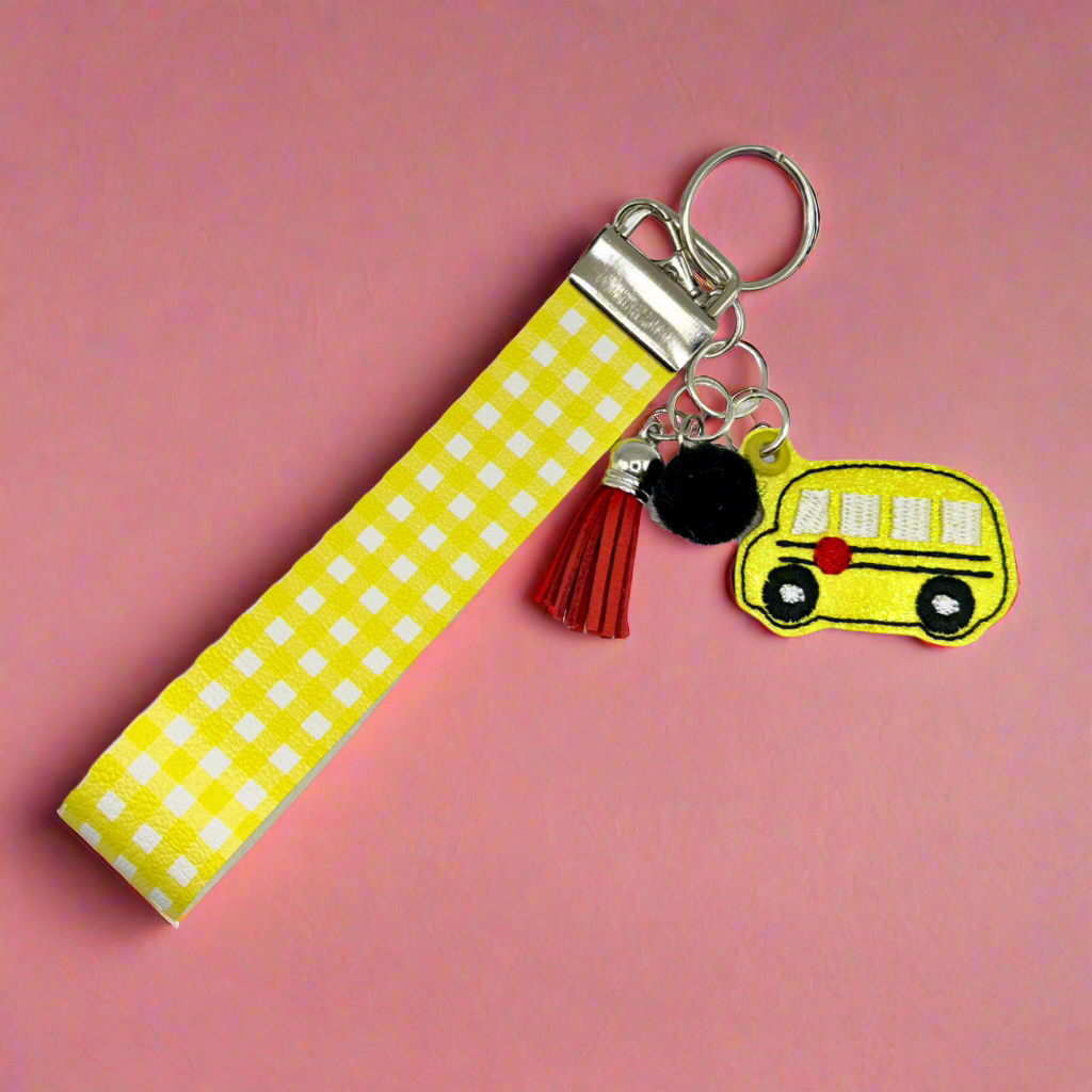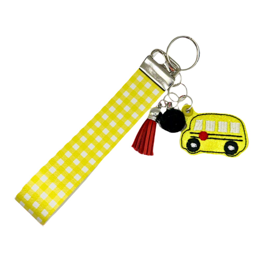 The School Bus Keychain and Wristlet will keep you rollin' like a pro! Keep your keys handy with the extra-cool school bus keychain, and feel the comfiness of the yellow vegan leather wristlet. Move over, kids, it's time for the big kids to take the wheel!