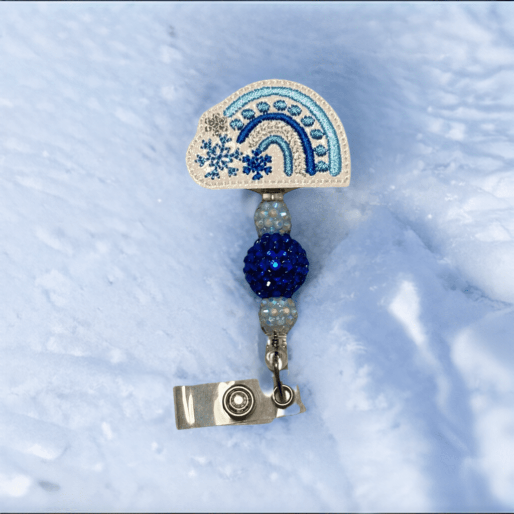 This unique and festive badge reel is a real showstopper! Featuring a snowflake and rainbow beaded design, this whimsical reel is sure to add a pop of character to any ID or set of keys. Who said being professional had to be boring? Let your personality shine with this one-of-a-kind snowflake rainbow beaded badge reel!