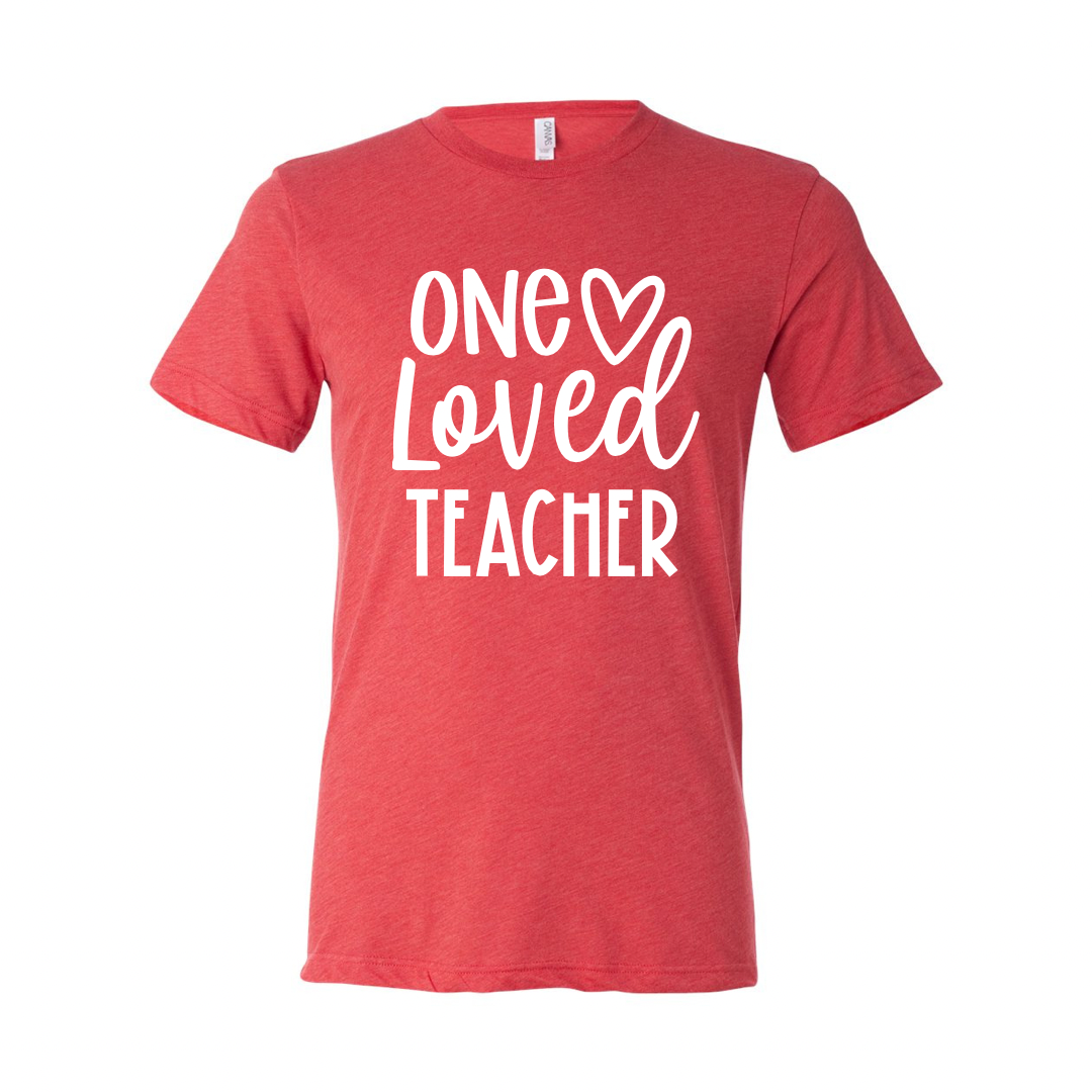 Upgrade your wardrobe with our One Loved Teacher T-shirt! This red T-shirt is made out of high quality super soft Tri-Blend material and the One Loved Teacher print adds an unique and eye-catching touch to the shirt.