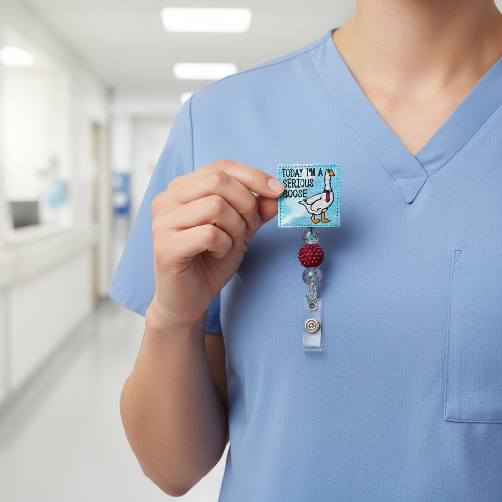 Goose up your work attire with this quirky badge reel. Show off your playful side with this 'Today I'm a Serious Goose' design while keeping your ID easily accessible. Perfect for anyone who doesn't take themselves too seriously.
