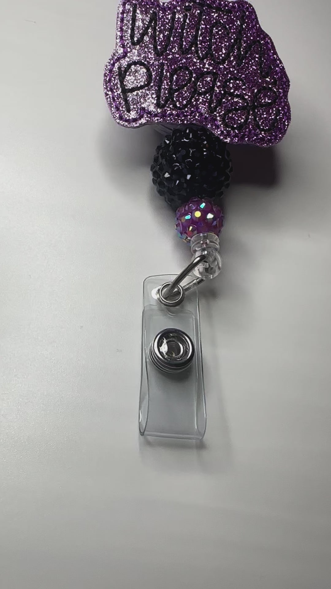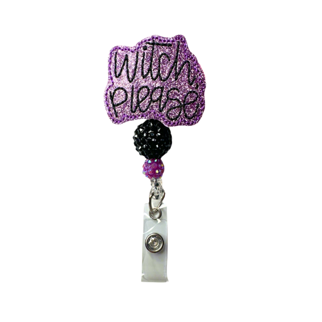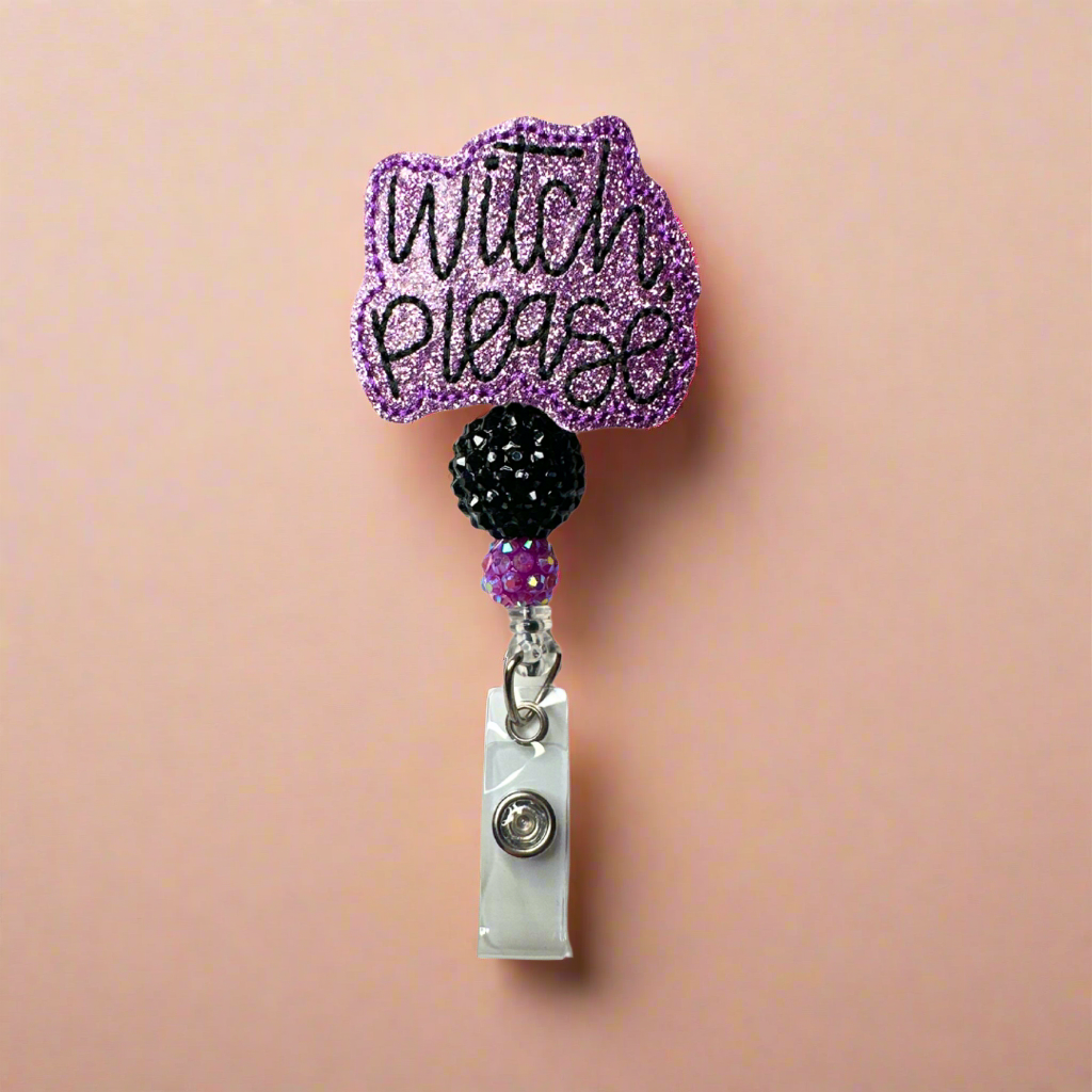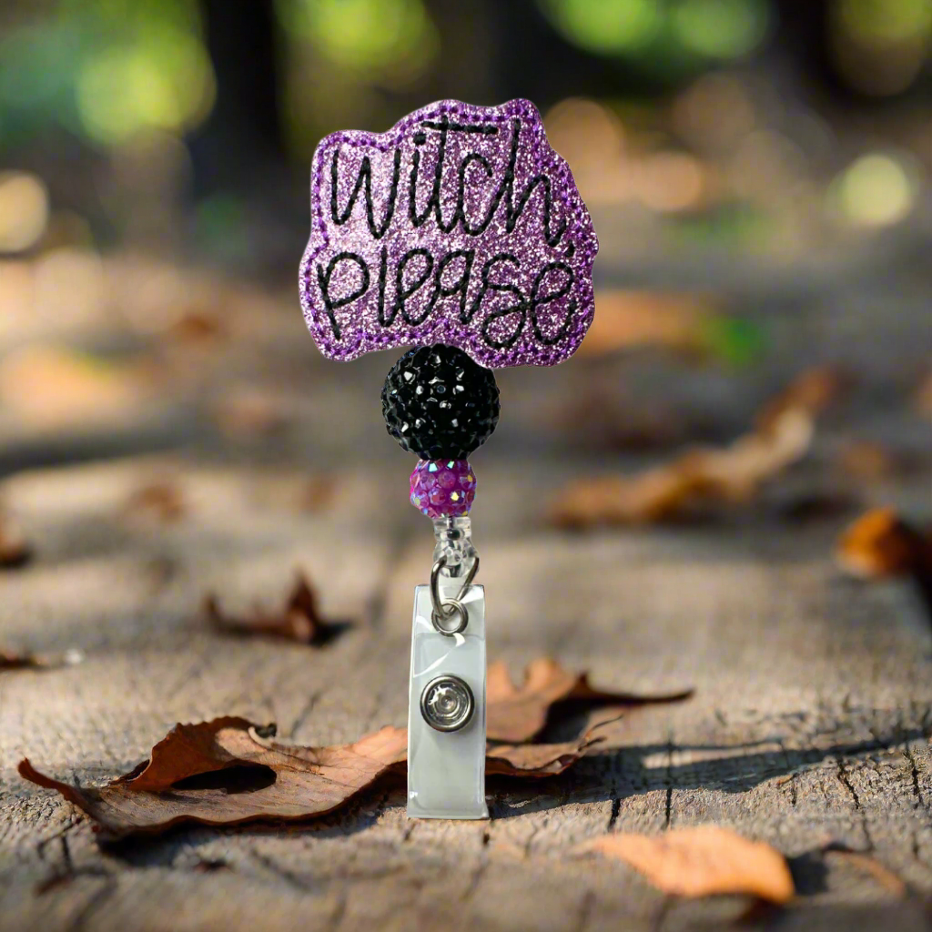 This Witch Please Beaded Badge Reel is the perfect way to show off your enchanting style! Keep your ID close and your witchy vibes closer with this stylish and spooky accessory, featuring a witch head bead and two purple beads. Fly fast and look fab - "Witch Please!"